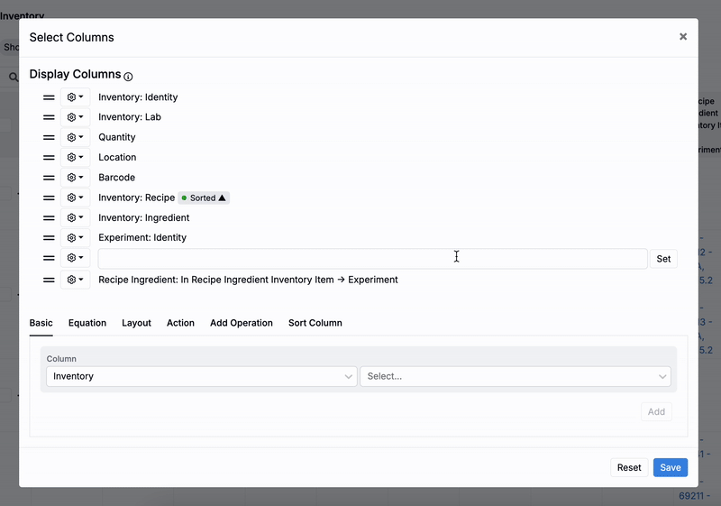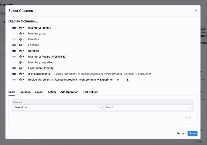 Users can configure the Inventory listing page in Uncountable by adding two types of columns that show how inventory items are used in experiments. This article walks through how to configure both column types using Reverse Relation columns.