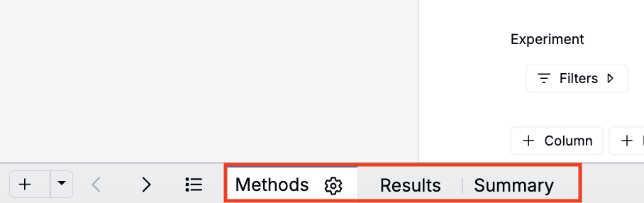 Add additional pages within the same notebook to organize content by topic or workflow stage (e.g., Methods, Results, Summary). Pages appear in the sidebar and page tab bar at the bottom of the notebook.