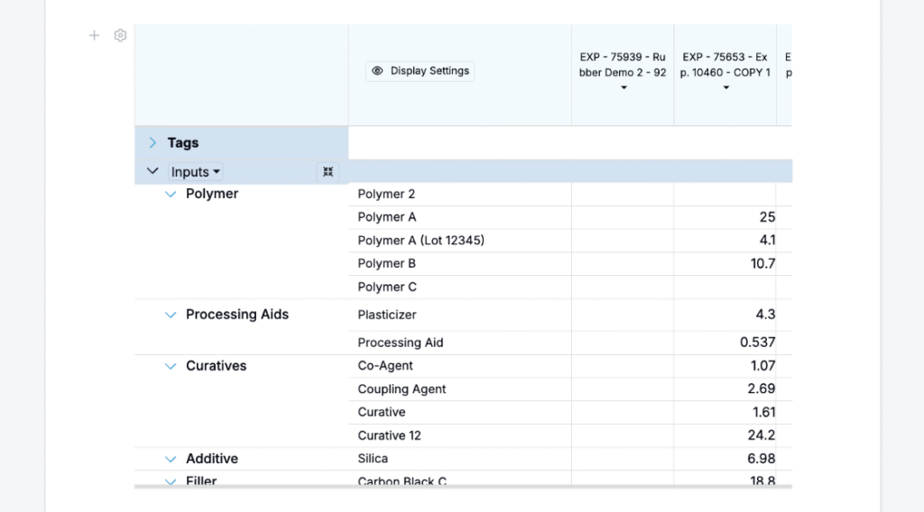 - Select the entity type (e.g., experiments, ingredients, batches).