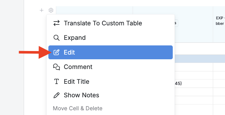 To edit the table, click ⚙️ > Edit.