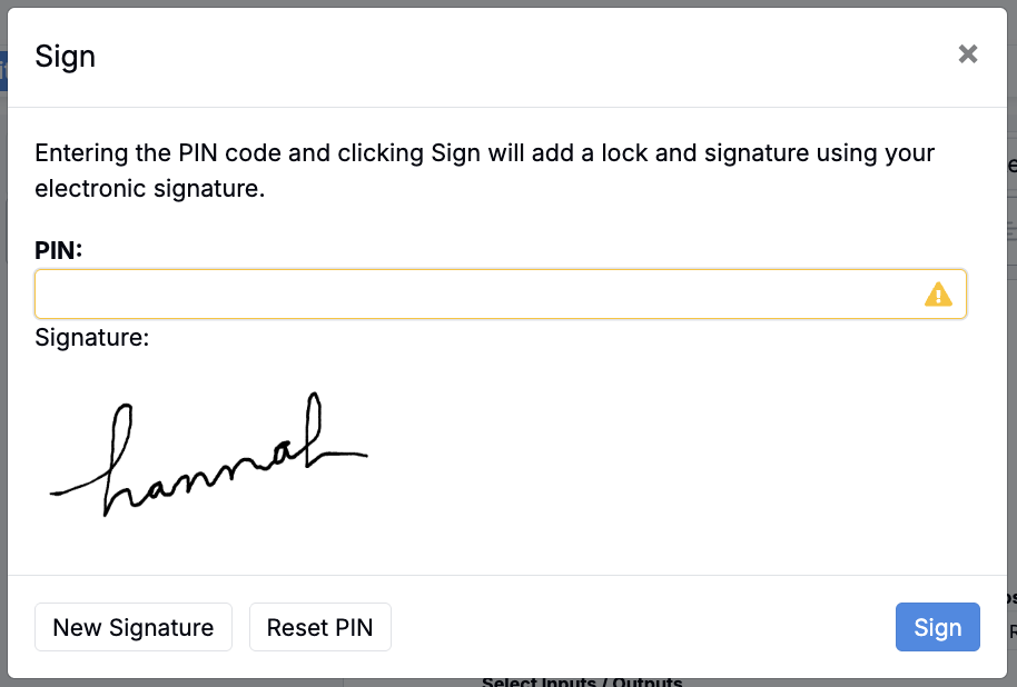 - Click Sign to open the sign modal.