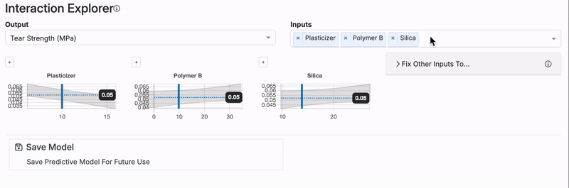 While model plots are limited to showing two inputs and one output at a time, the Interaction Explorer allows for more complex visualizations involving multiple inputs.