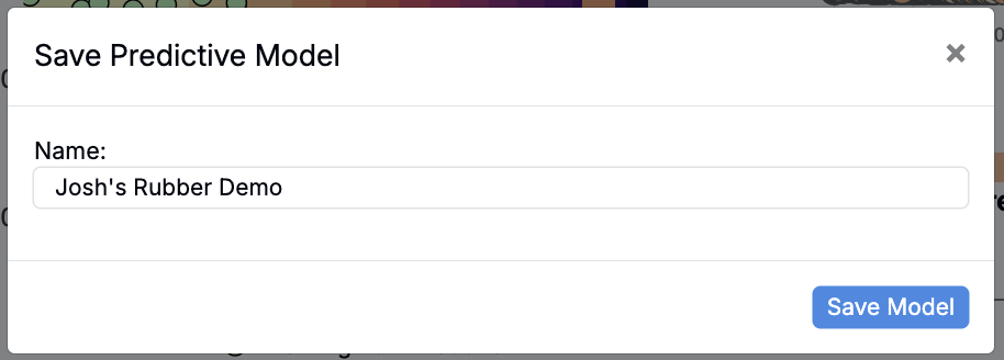 Once a predictive model is complete, it can be saved for future use by clicking the Save Model button at the bottom of the page. While all models are saved automatically by default, clicking this button lets you give the model a custom name for easier identification and access.