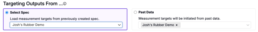 - Select Spec — Use a previously created spec associated with the current project or any project selected from the dropdown menu. The spec will be used to identify measurements of interest.