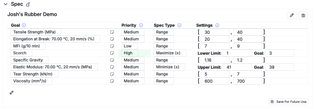 When building a model for analysis only, rather than generating recommended experiments, you do not need to set priorities or thresholds for the spec. The platform automatically creates a separate model for each selected measurement of interest, and these priorities or goals do not influence how the model is built.