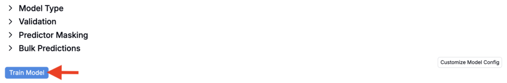 Once model settings have been configured, click the Train Model button to run the initial training job.