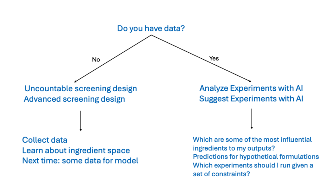 To use these tools, users must have existing experimental data for the platform to create accurate predictive models. If no data is available yet, use Advanced Screening Design (DOE) to generate datasets first.
