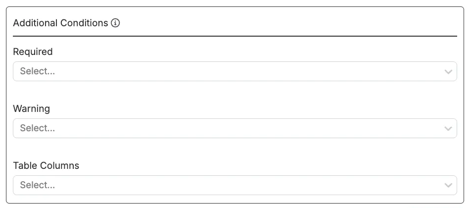 「追加の条件」セクションでは、プレビューアップローダーモーダルで必須または入力を促す条件を追加できます。