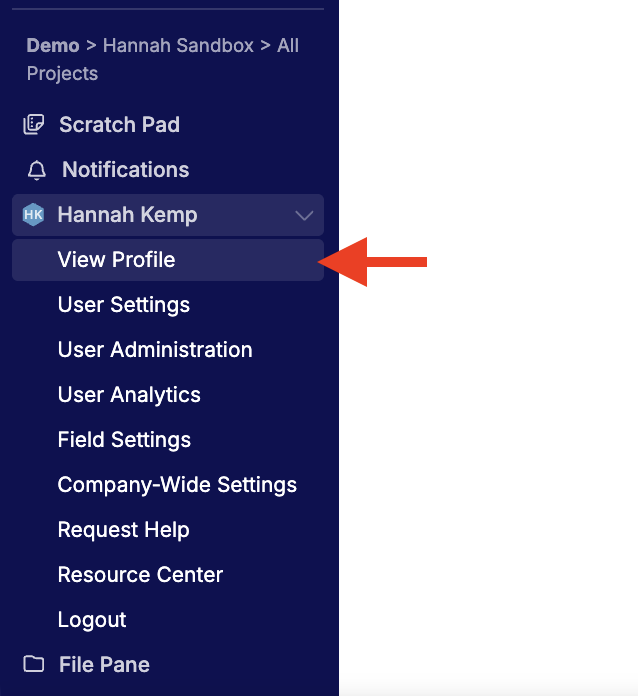 Access your Profile page from the navigation bar by clicking [Account Name] > View Profile.