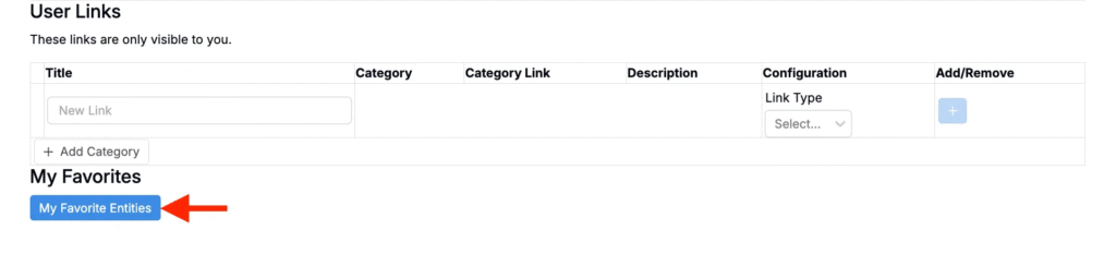 Within the User Links section, users can maintain their own private set of favorites, which are only visible to them.