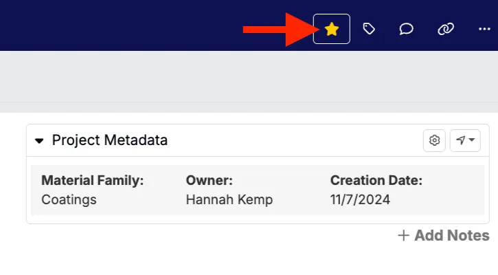 To favorite an entity, click the ⭐ icon in the Uncountable header on that entity’s page (or on the Select Projects page for projects).