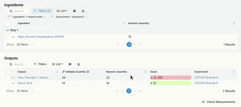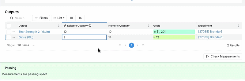 Previously, the simplified outputs table made it harder to compare values against specs without opening individual records or doing manual visual checks. With this update, you can bring more of that validation workflow into the listing itself.
