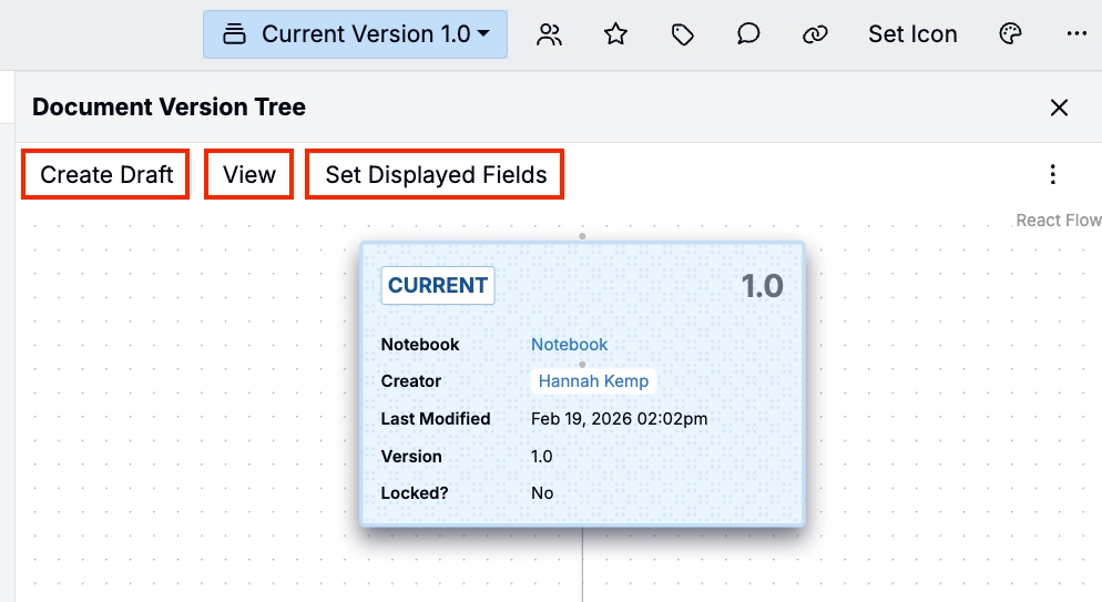 In most workflows, teams should treat the Current version as the approved source of truth, then create a Draft to make changes and review updates before promoting that draft to Current. Drafts can also be created from any prior version when you need to branch from an older baseline.