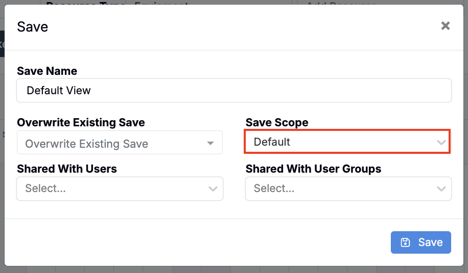 Resource Scheduling Calendar: Default Scope Save