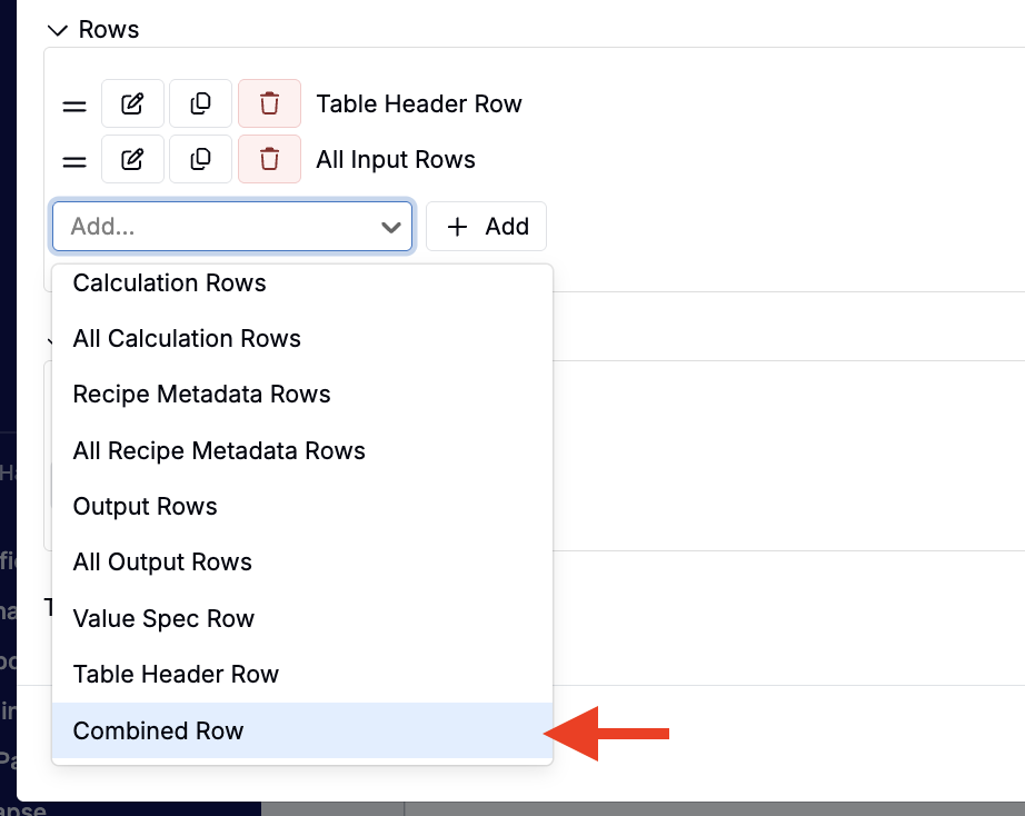 Table Builder now supports combined rows, similar to “layout columns” on listings. This is useful when you want a more compact table for dashboards or reports, where reviewers need to see several related values together without scrolling across many columns.