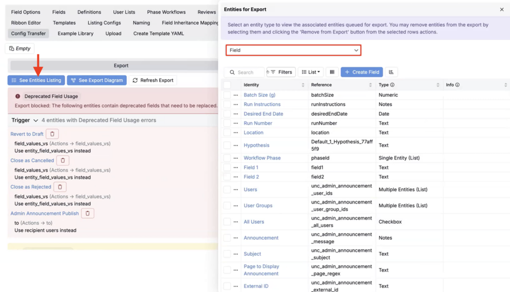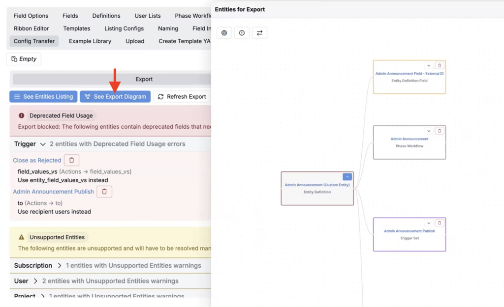 We’ve improved our Config Transfer feature to make it easier to understand what will be exported, where imported entity, trigger, or field is coming from, and why an export might be blocked.