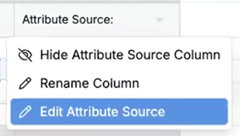 • Use the attribute source column header menu to: