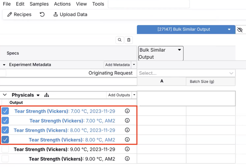 Uncountable users can now quickly add outputs to an experiment with a new Add similar outputs option, which creates new outputs using the same condition parameters as outputs already added to the experiment.