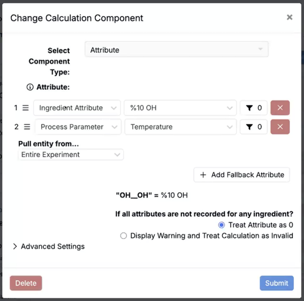 We’ve recently added support for attribute source columns on the Recipe view of experiments. This new recipe column type makes calculation debugging more transparent by showing which value was used after applying an attribute fallback stack.