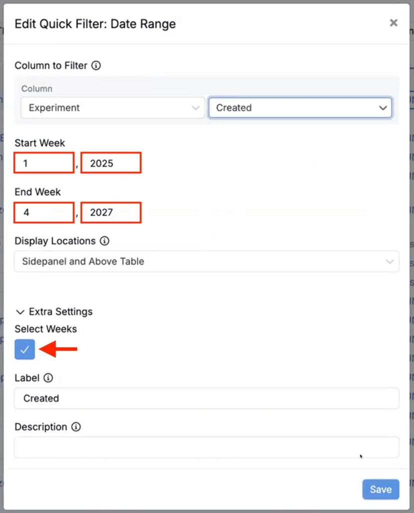 • Within Extra Settings, toggle on the Select Weeks checkbox.