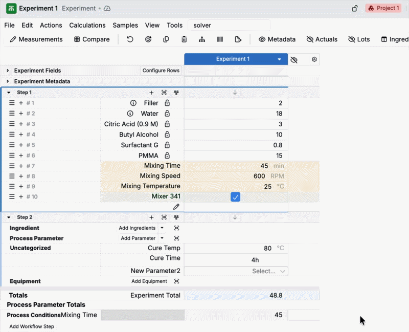 • When Solver Mode is on, after editing an experiment total (and workflow step totals) a Solver lock (≠) is automatically added once you click out of the total cell.