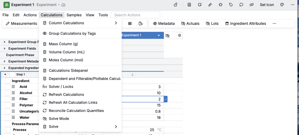 - Column Calculations — Display column calculations (Mass, Volume, Moles, etc.) on the data grid