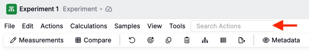- Measurements — Quick navigates to the Measurements view of experiments in view