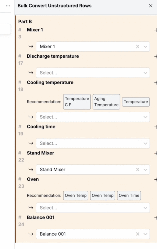 - Unmatched inputs will added as unstructured rows (highlighted in orange).
