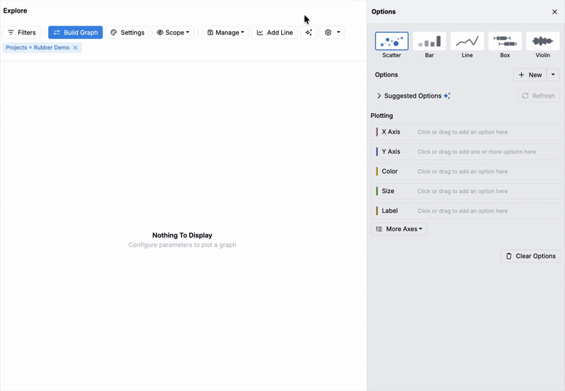 With AI-driven plotting, scientists and teams can explore trends, compare metrics, and surface insights more efficiently on the Explore Data page.
