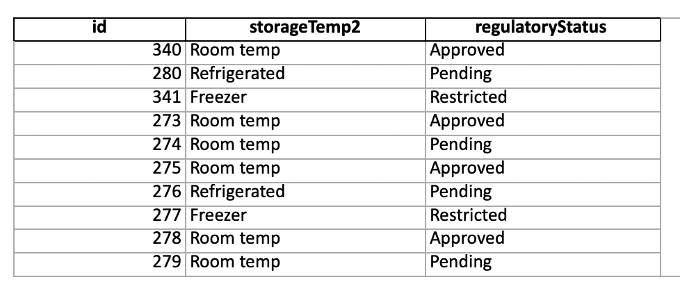 - Rows — Each row represents one ingredient, matched by Ingredient ID.