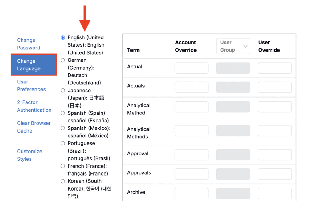 In Uncountable, users have the flexibility to set their own language preference. Language preferences are on an individual user level — preferences set to not impact how the platform is viewed for other user.