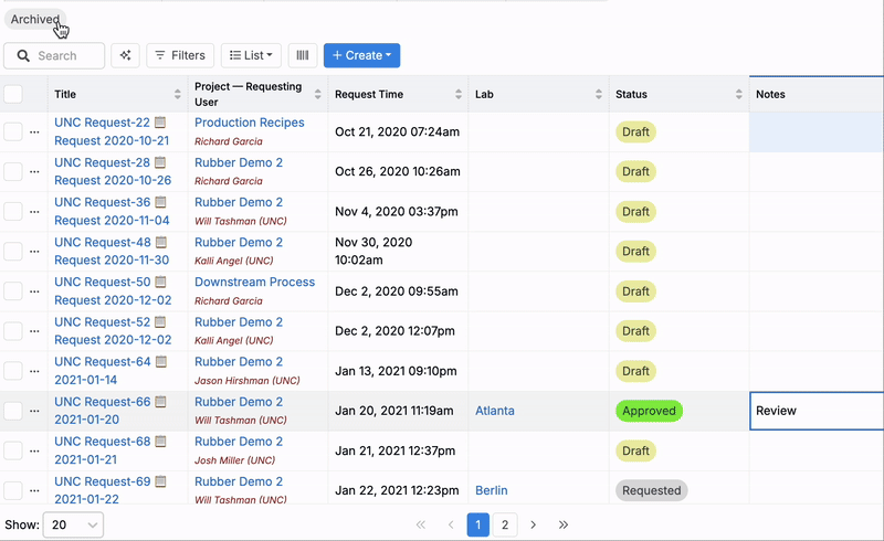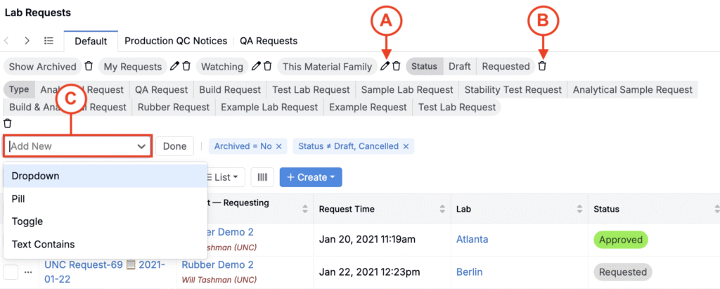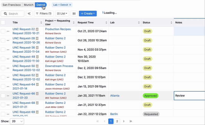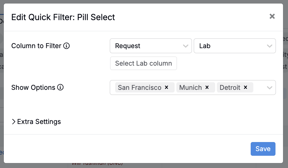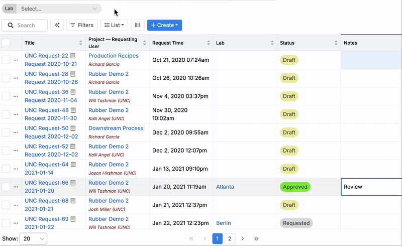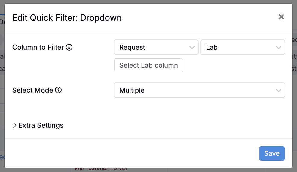 For example, a dropdown filter on the Lab Location column might allow users to select one or more labs from a dropdown menu to filter results.