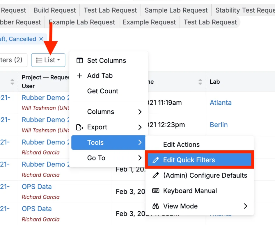 Note that Quick Filters are user-specific. Changes do not affect what other users see.