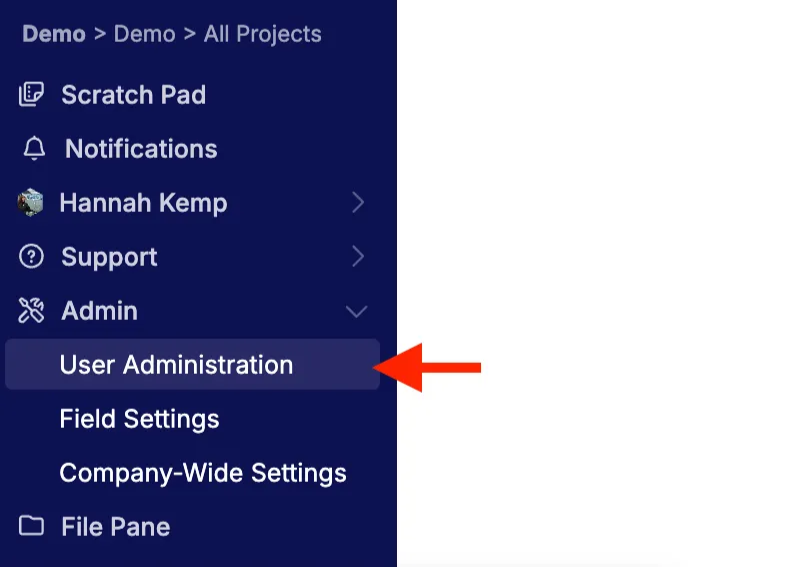 To access User Administration, select Admin > User Administration from the navigation bar.
