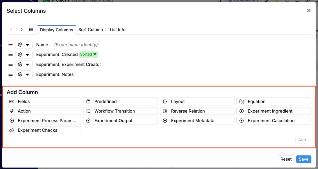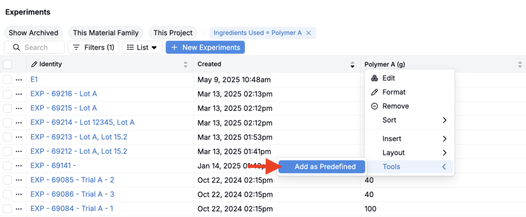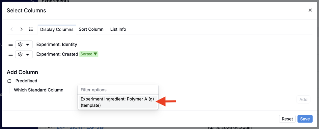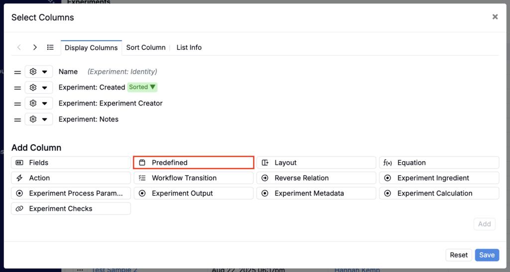 Once added, those columns appear as shortcuts within the Predefined column category for all users, making common column selections easier to find.
