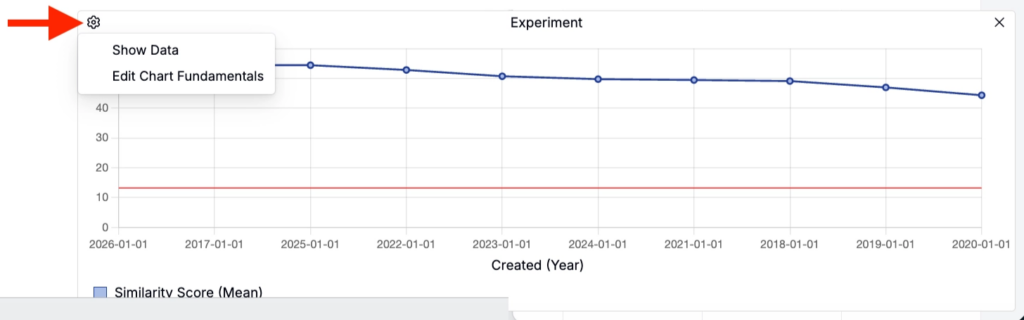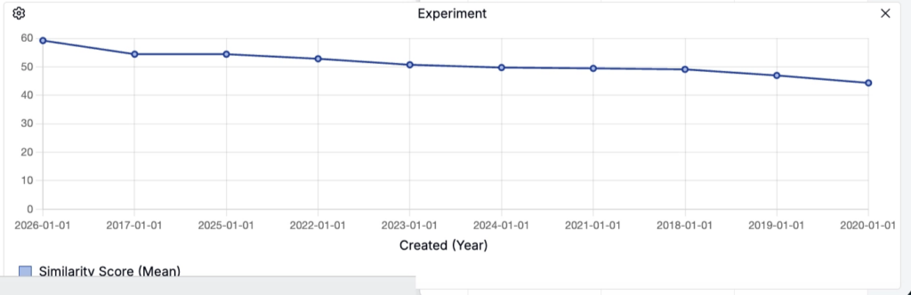 The chart plots Created date vs Similarity Score (mean) to helps you quickly spot patterns in your results over time.