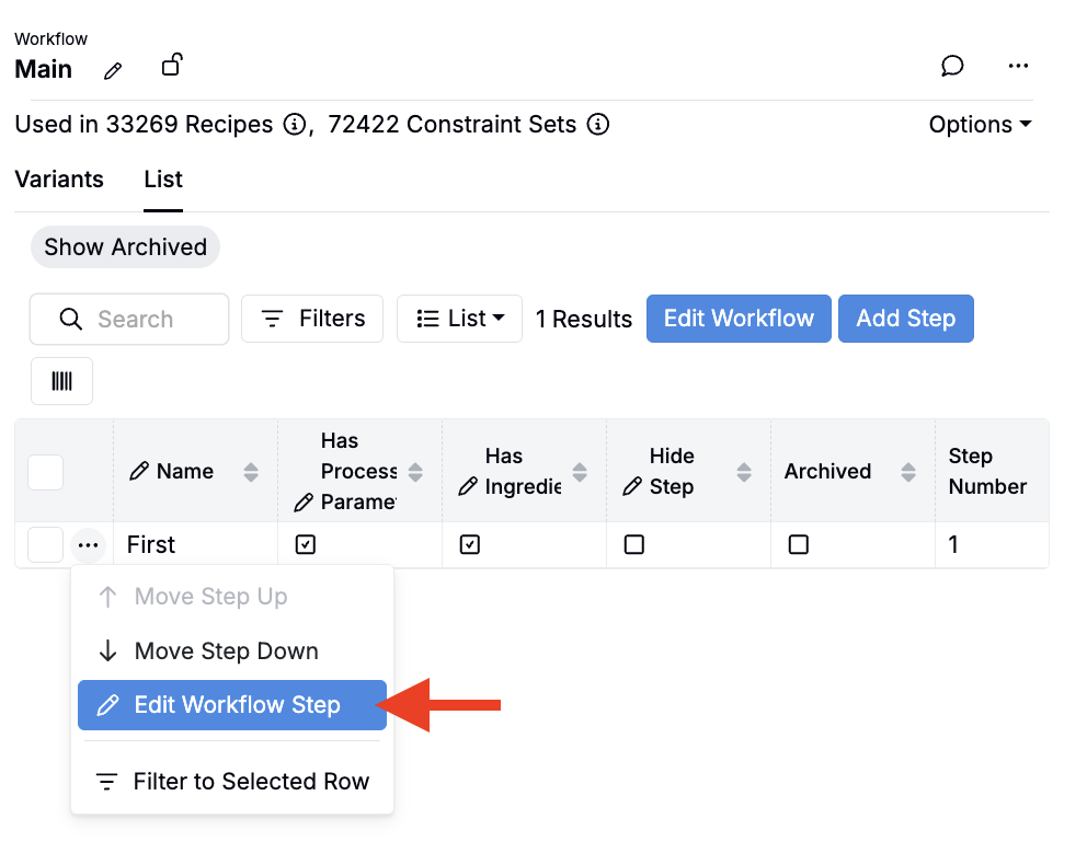 - For a workflow step, select … > Edit Workflow Step.