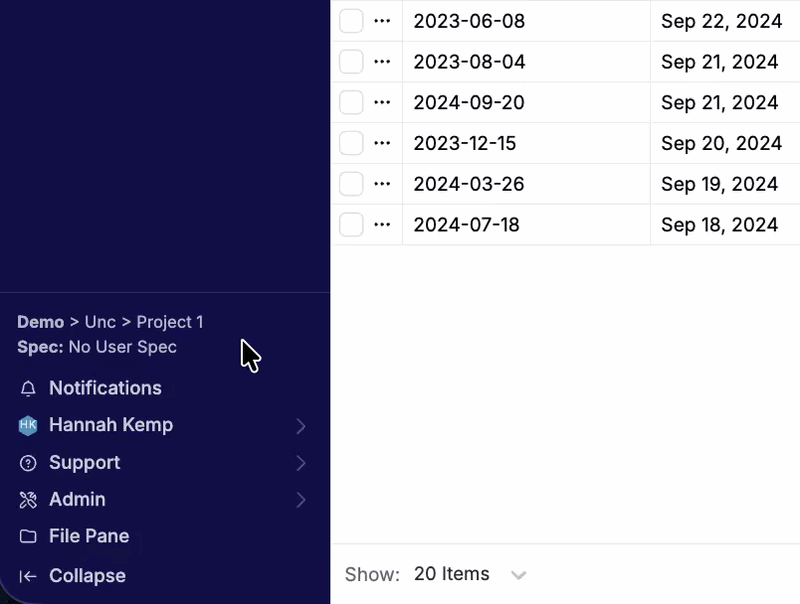 If no user assigned spec is selected, the selector displays No User Spec, and Uncountable falls back to the project default spec. To remove the user assigned spec override, click the x next to the spec name in the navigation bar.
