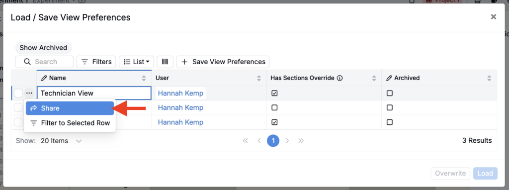You can also share View Preferences with specific people or teams. When you share one, choose an access level: