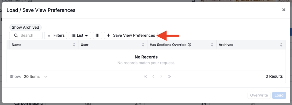 - Select View > View Preferences. In the modal, click Save View Preferences.