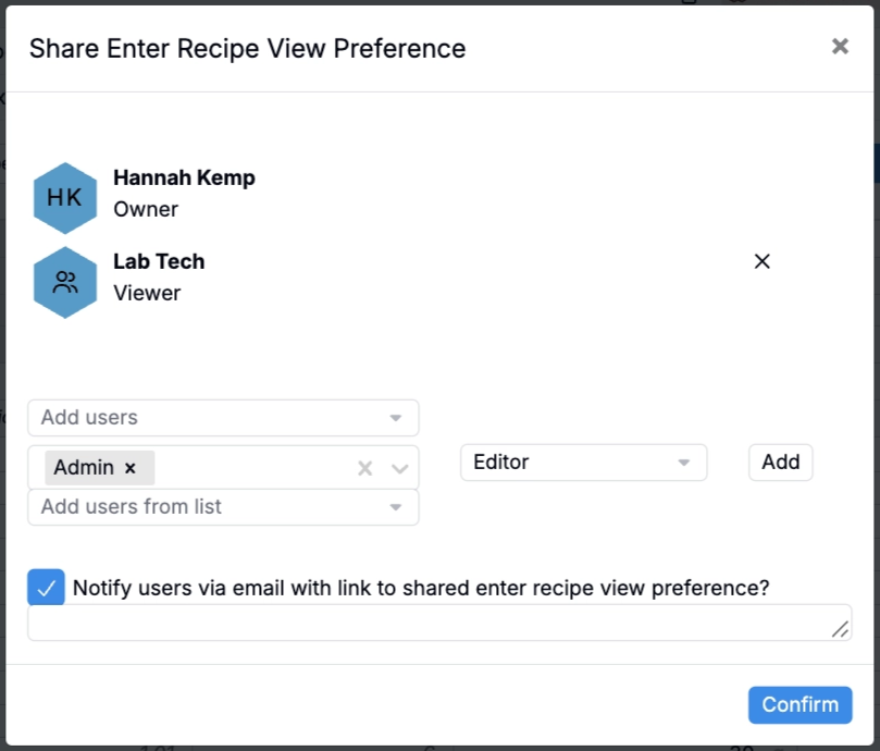 - To notify users by email when sharing the View, use the checkbox below. Use the text field to add an optional message.