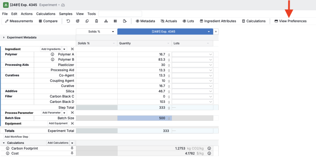 - From the Recipe or Measurements view of experiments, Select View > View Preferences.