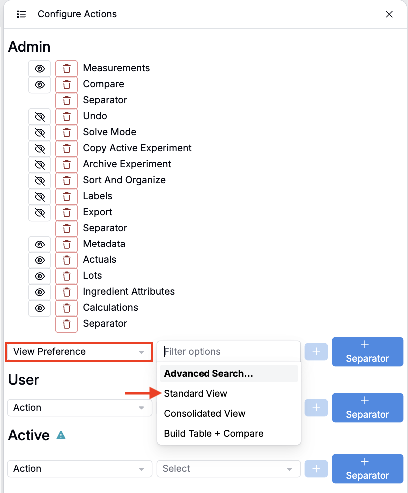 - In the side panel, under either Admin or User, select View Preference + the View you want to add (e.g. Standard View).